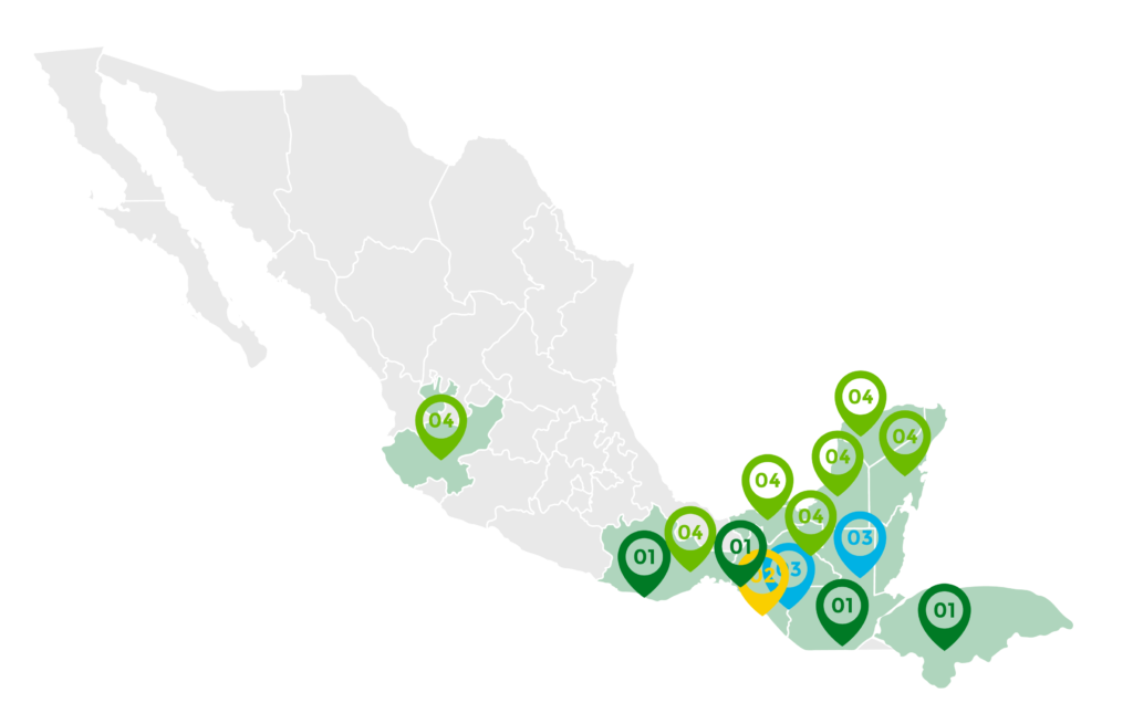 Implementamos prácticas de manejo forestal sostenible e inclusión de criterios de conservación de la biodiversidad en el bosque de pino-encino en Chiapas. También nos ocupamos del fortalecimiento de capacidades y buenas prácticas de un modelo silvopastoril y agroforestal, así como en relación al aprovechamiento de la resina. Avanzamos en la creación de un “Modelo Regional de Forestería Comunitaria” derivado de la conservación activa de los bosques y el manejo integral del paisaje en la Sierra Madre de Chiapas.